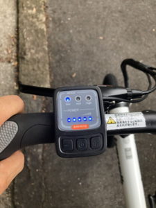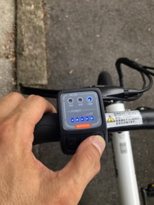 アシストレベルは4段階で、最大にすると、ほんの少し踏み込んだだけで、グイグイと進んでいきます。航続距離は最大で80km。このサイズのミニサイクルで遠距離ツーリングするケースはないでしょうから、アシストを最大にしていても、数日はバッテリーが持ちそうです。